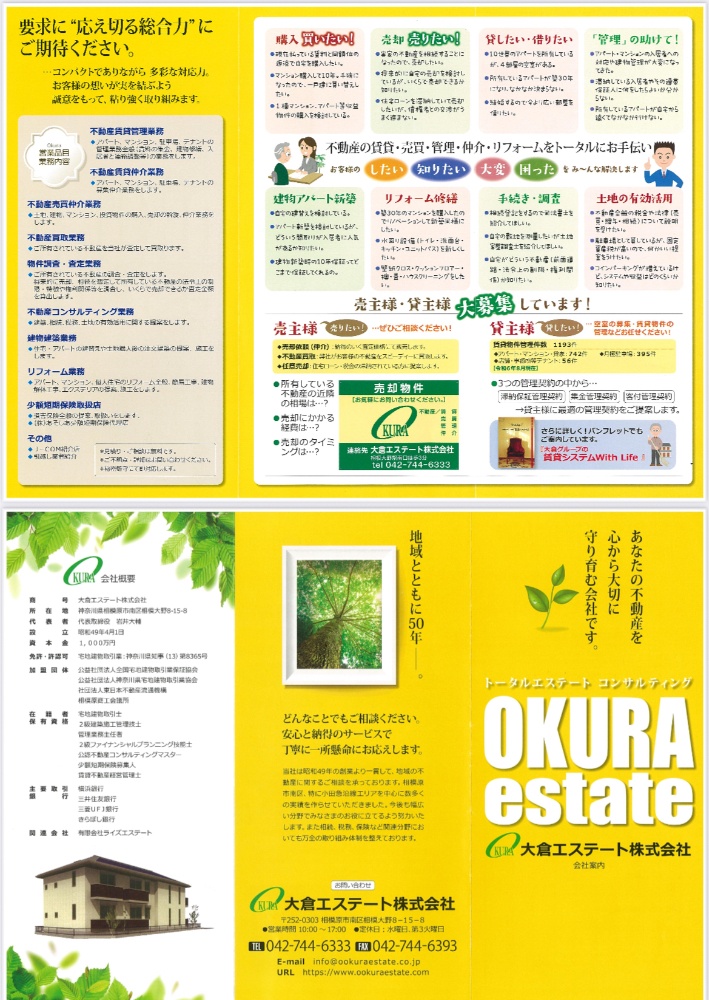 相模大野周辺を中心に賃貸マンション・賃貸アパートの管理・仲介や不動産売買の仲介などをメインに不動産関連事業を展開し、おかげさまで30数年の実績があります。